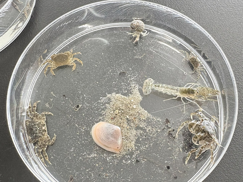 竹原ステーションに戻ったあとは、室内でセミナーやブルーカーボン生態系の実験と干潟で見つけたいきもの観察等をしました。