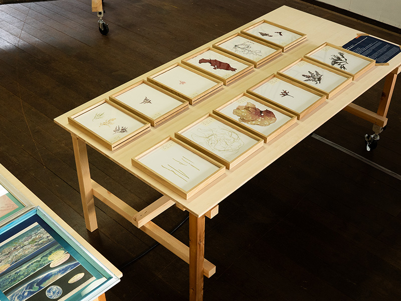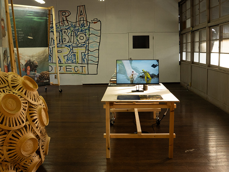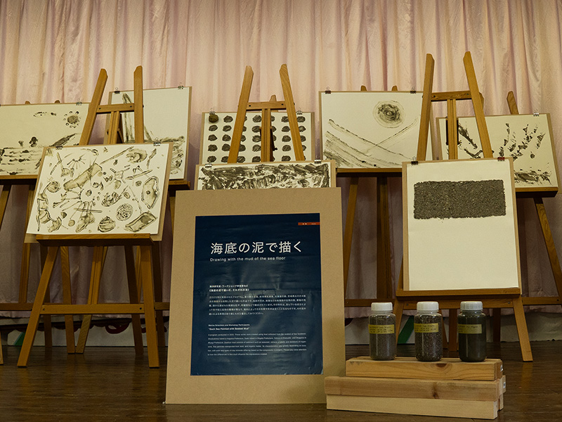 瀬戸内国際芸術祭にあわせて、粟島芸術家村内の講堂にあるタラの常設展示もリニューアルしました。タラの活動紹介や、タラにかかわるアーティストによる作品に加えて、現在日本で行っている科学プロジェクト「Tara JAMBIO ブルーカーボンプロジェクト」のアート作品も並んでいます。