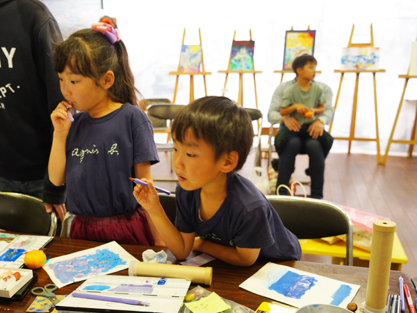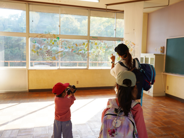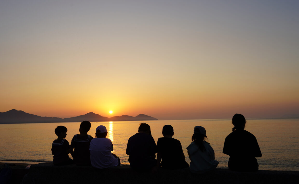 この春、粟島旧小学校にて開催された「TARA JAMBIO ART PROJECT 展」を特別に鑑賞したあと、夕日スポットの西浜へ移動し、ビーチでの活動に移りました。